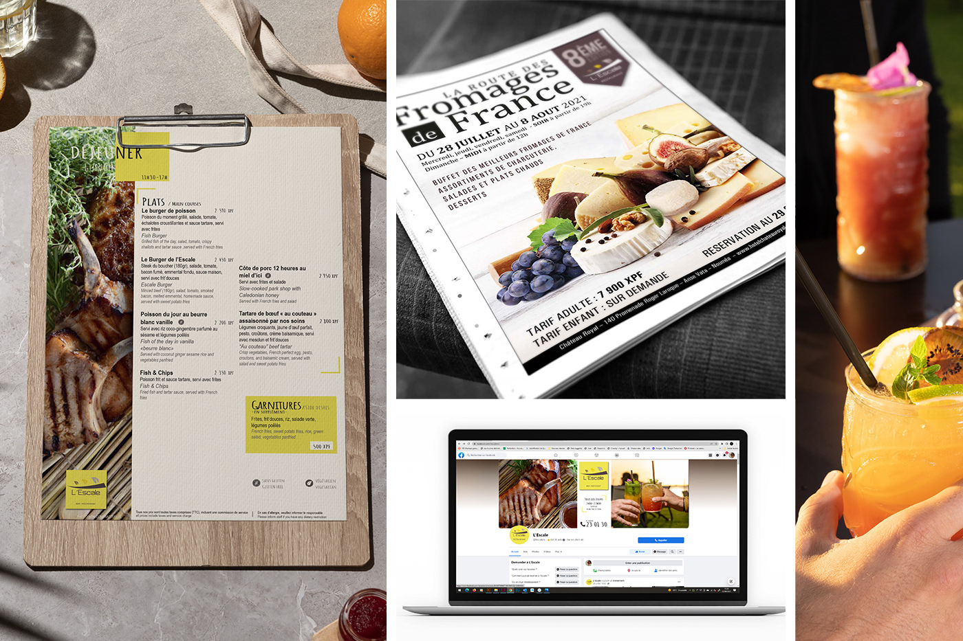 Conception d’un visuel basé sur un montage photo avec code couleurs selon les produits , de la mise en avant des produits.