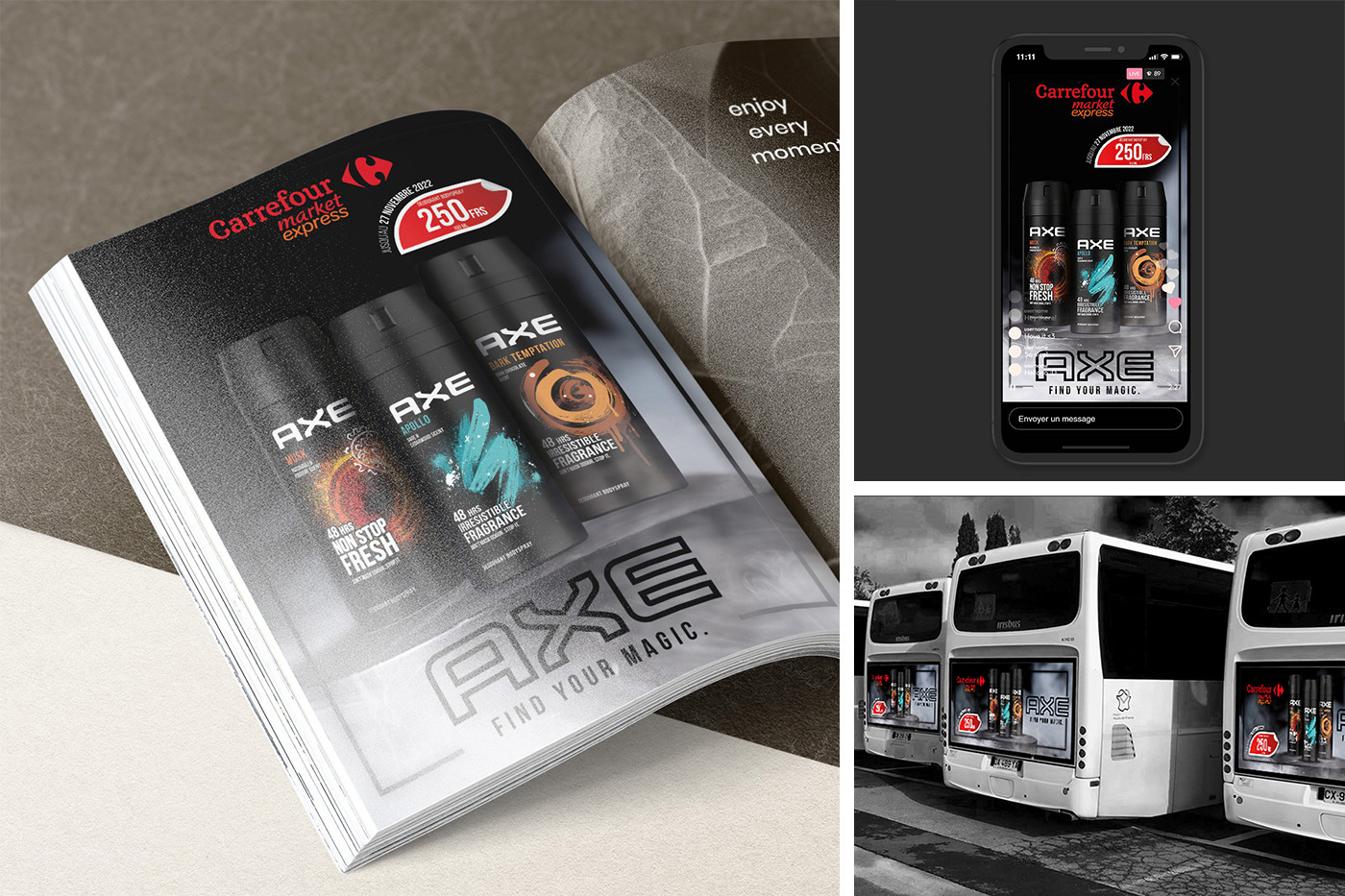 Créer un visuel charté Axe pour promouvoir de nouveau produits de la marque ainsi que le nouveau prix attractifs des produits dans les magasins de l'enseigne.