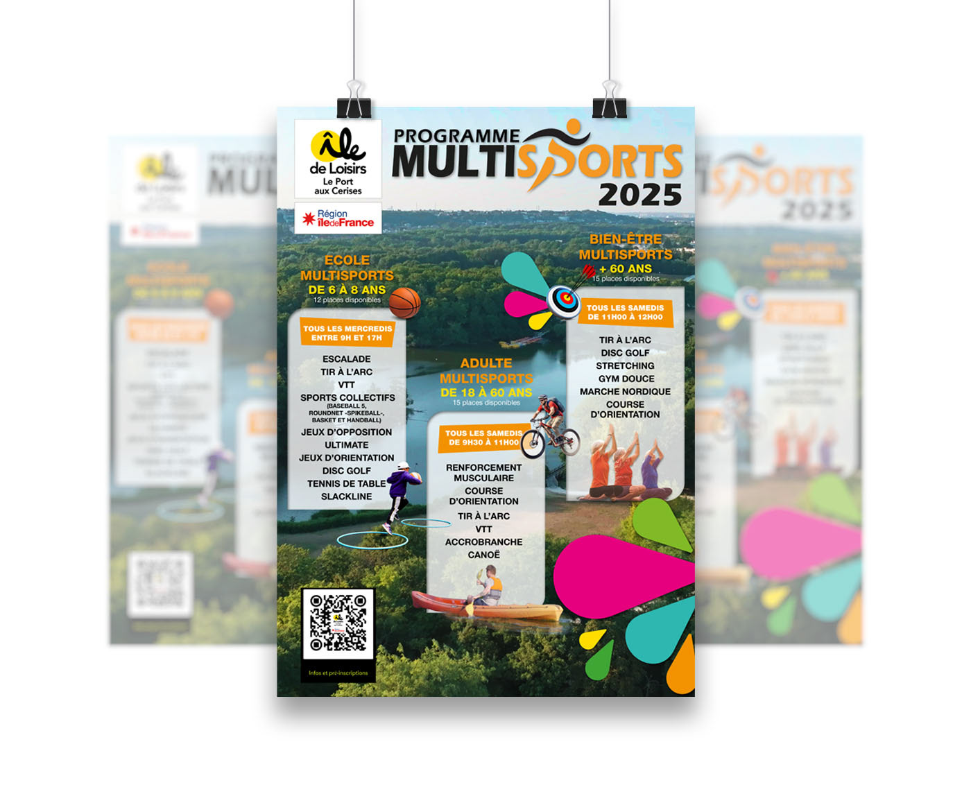Palette moderne et structure claire pour une lecture rapide et un fort impact visuel, déclinée selon la charte graphique de la ville.