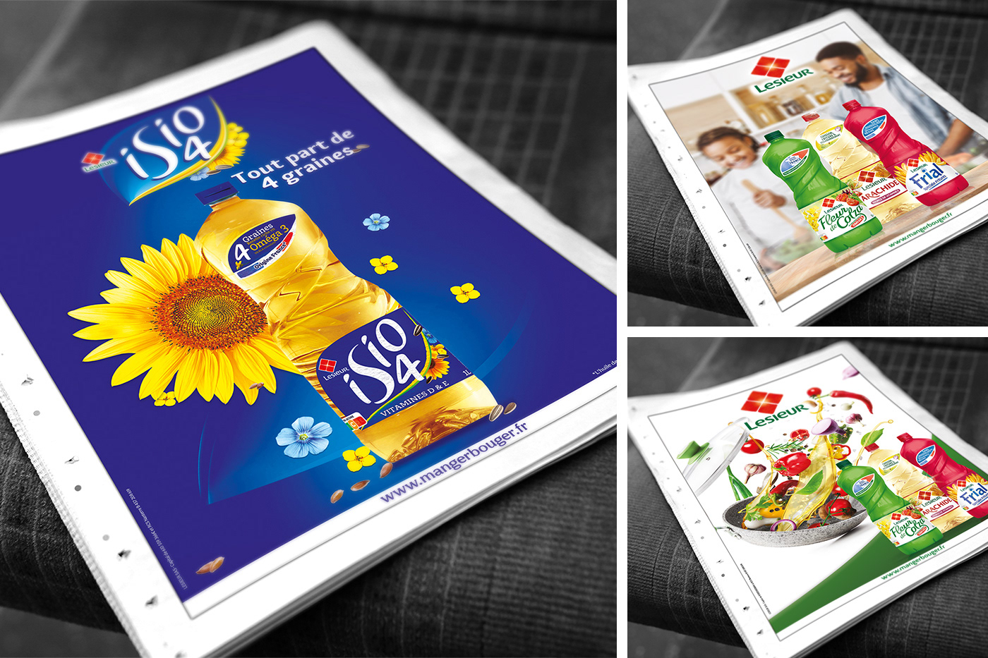 Créer un visuel selon la charte Lesieur Isio 4 et création d'une charte graphique pour les 3 huiles Lesieur Colza, Arachide et Fial.