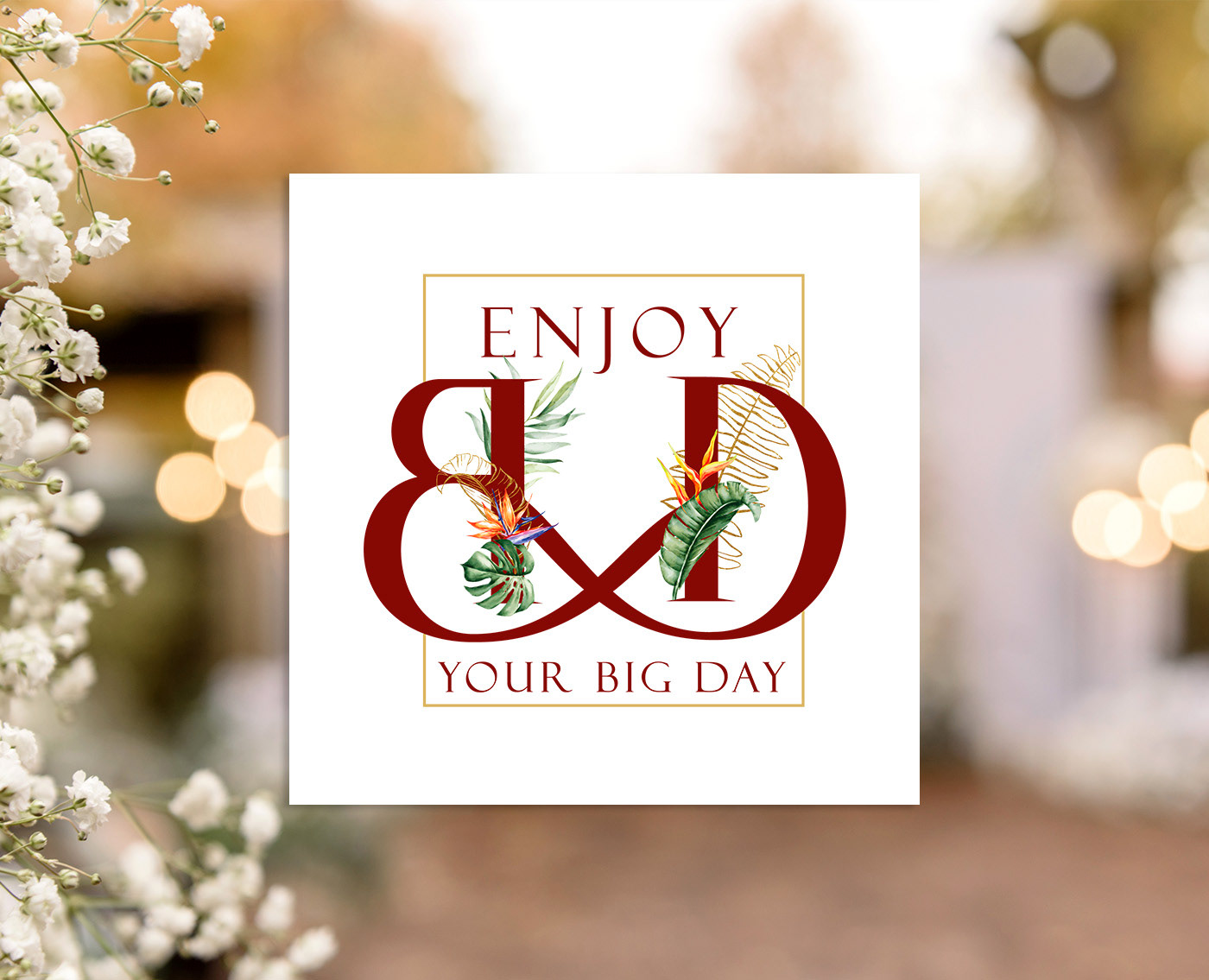 Production : Création d’un monogramme typographique combinant lettres et éléments floraux tropicaux pour exprimer la chaleur, la vitalité et la créativité. Utilisation d’une palette bordeaux et or pour évoquer la sophistication et l’émotion, équilibrée par une composition graphique minimaliste et structurée. Le logo a été pensé pour s’adapter facilement aux supports print, digitaux et papeterie événementielle (faire-part, signalétique, réseaux sociaux).